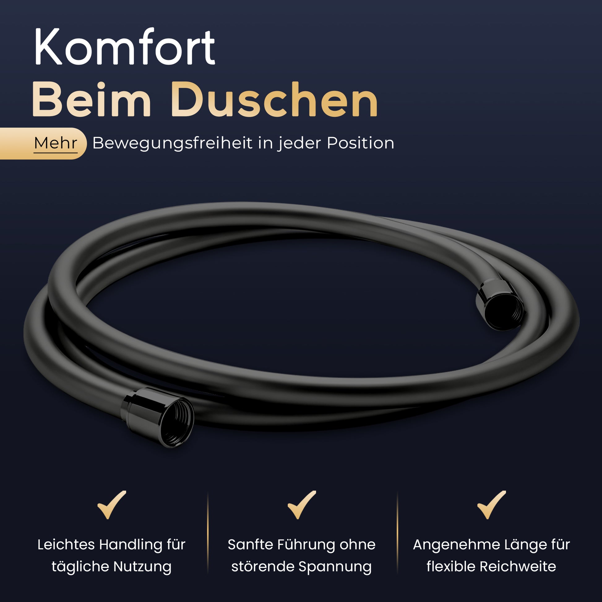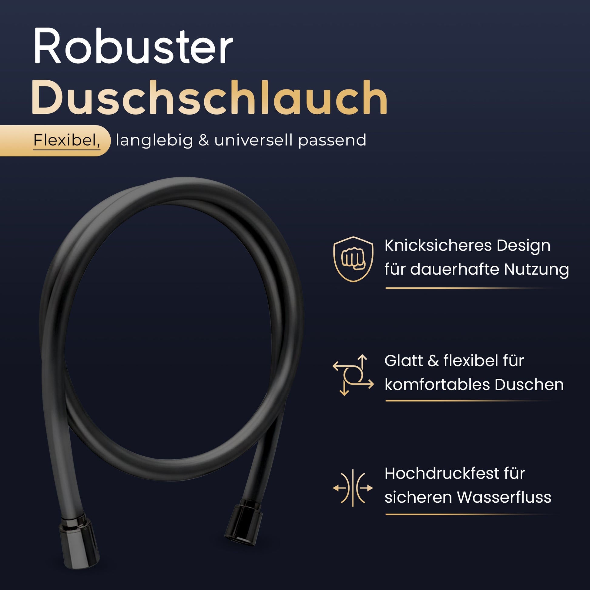Super elegantes Design in Fachhandels-Qualität. Durch die schwarzglatte Oberfläche lässt sich dieser hochwertige Brauseschlauch kinderleicht reinigen und bleibt Ihnen lange erhalten.