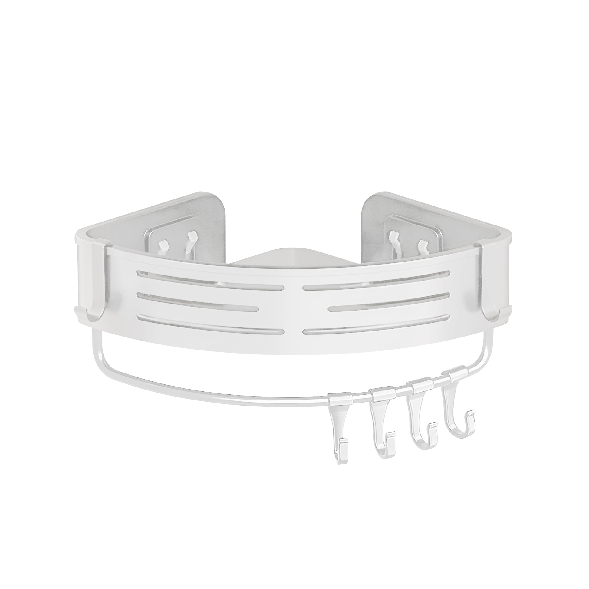 Hergestellt aus rostfreiem Aluminium mit edler Schutzbeschichtung, bleibt die Ablage selbst bei täglichem Wasserkontakt makellos und behält ihren modernen Glanz über Jahre hinweg. Die großzügige Ablagefläche bietet ausreichend Platz für Shampoo, Conditioner und Duschgel, während elegante Haken zusätzlichen Stauraum für Rasierer oder Schwämme schaffen.